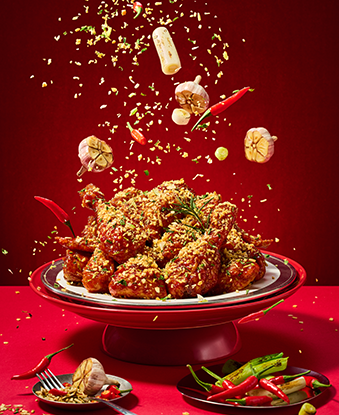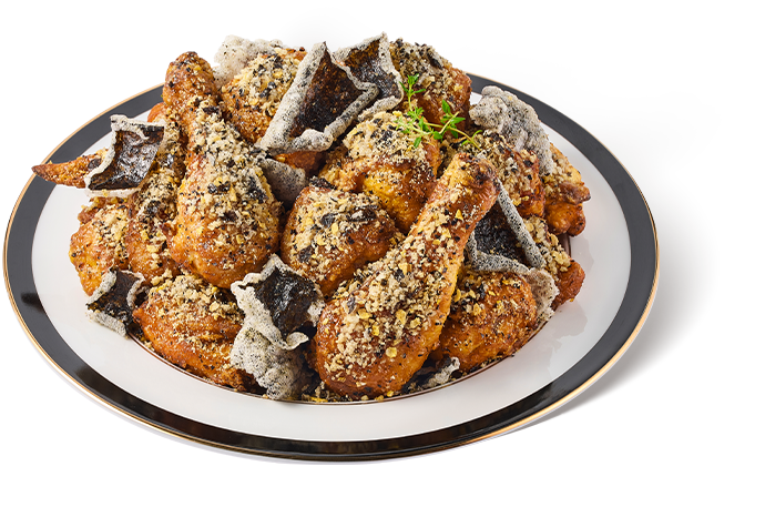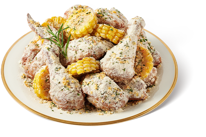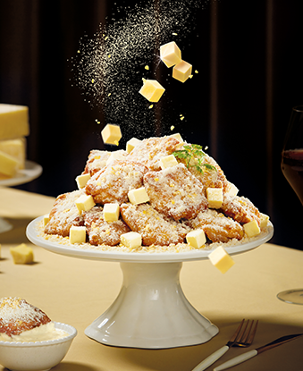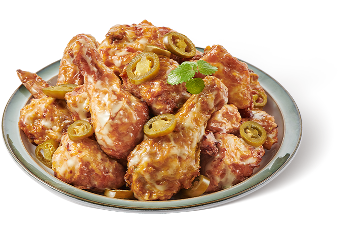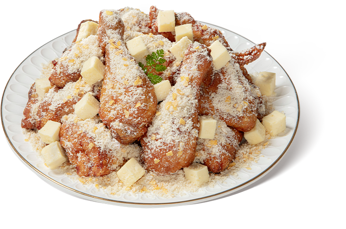 기름에 튀겨 바삭한 식감을 주는 후라이드 방식을 조합하여