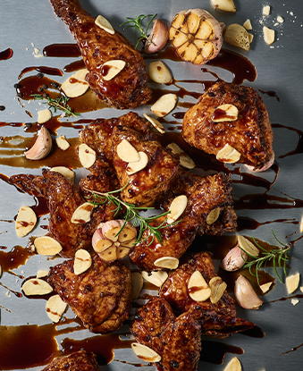 오븐에서 초벌하여 닭고기의 육즙을 잡습니다.
