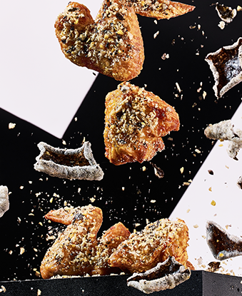 기름에 튀겨 식감과 맛을 극대화합니다.